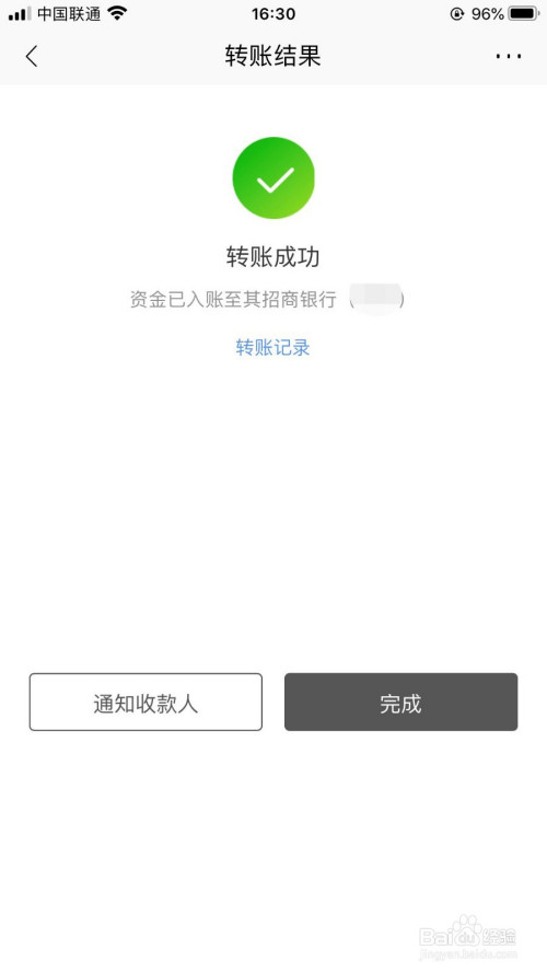 在“转账成果”界面中,显示“转账当作功”字样提醒,申明银行卡当作功利用手机号转账了。