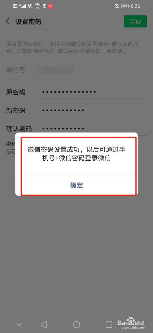 更改微信密码完当作,如图