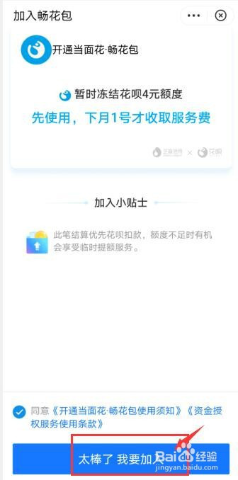 点击下方【太棒了,我要插手】即可完当作开通。开通需要4元办事费,先利用,下月1号收取办事费。