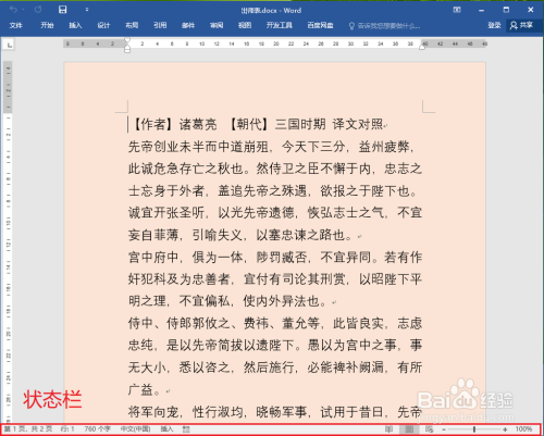 它位于状况栏最左边,例如“第1页,共2页”,暗示当前文档有2页,当前位置是第一页。