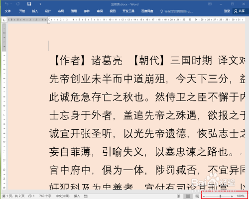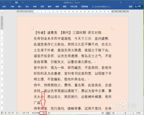 它在光标信息右侧,例如“760个字”即暗示文档共计760个字符。