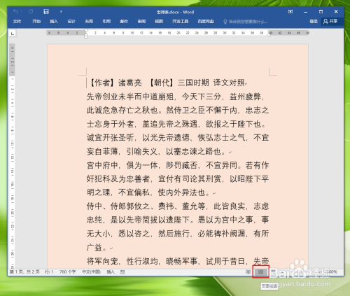 当前视图为“页面视图”模式,在状况栏平分别点击“阅读视图”、“页面视图”、“Web版式视图”按钮可快速切换视图模式。