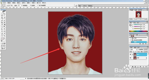 在【色相/饱和度】编纂栏中,选择【红色】,然后按照要改换的布景底色调整色相,最后点击右上角的【好】
