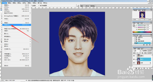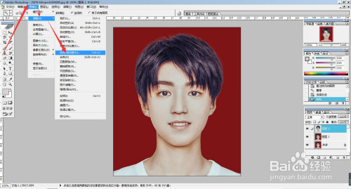 点击图层1,然后点击菜单栏的【图像】—【调整】—【色相/饱和度】