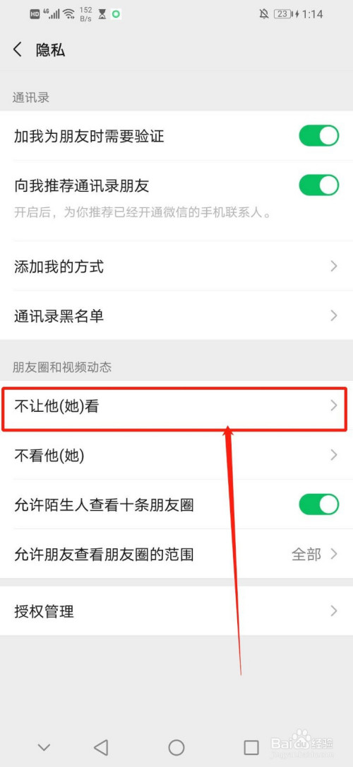 5.点击“隐私”界面第五行的“不让他(她)看”
