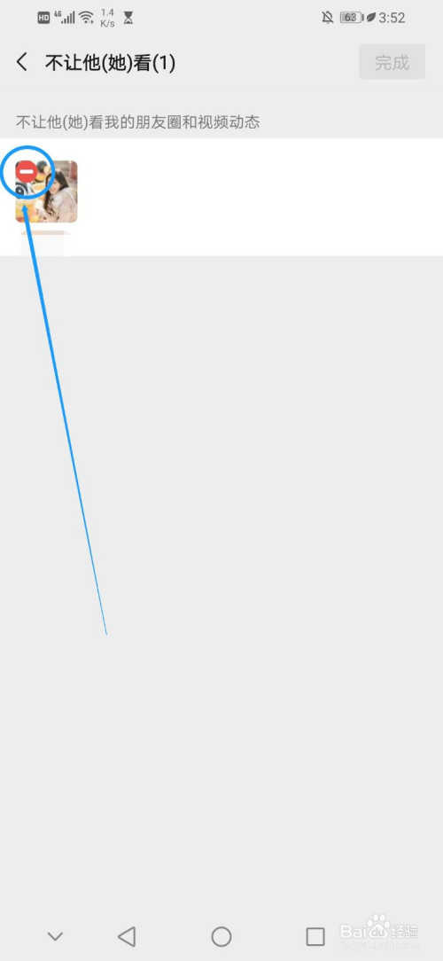 进入“不让他(她)看”界面后,点击“不让他(她)看”界面的“一”,如图
