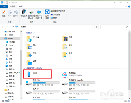 双击“设备和驱动器”下面的手机图标,例如“2020”。