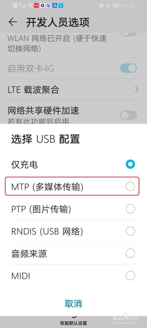 选择“MTP(多媒体传输)”。