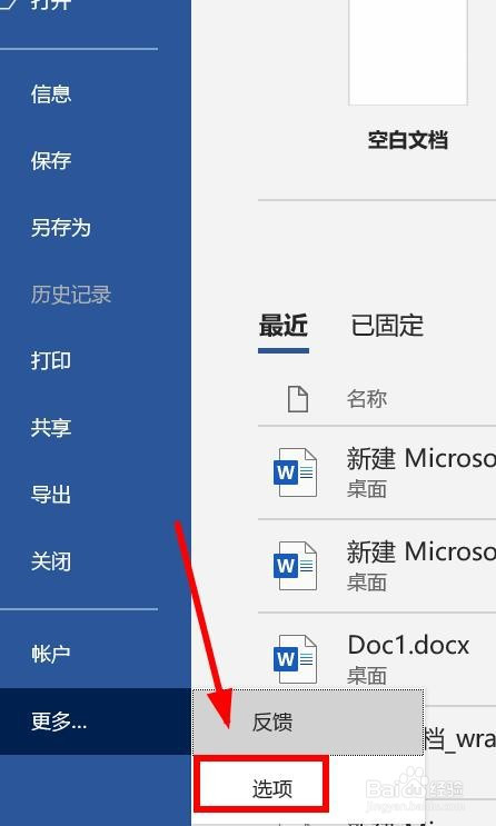 点击“更多”、“选项”。
