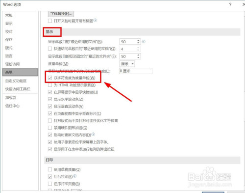 找到“显示”。打消“以字符宽度为怀抱单元”前面的打勾。