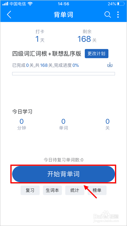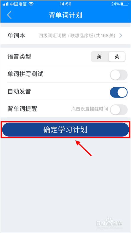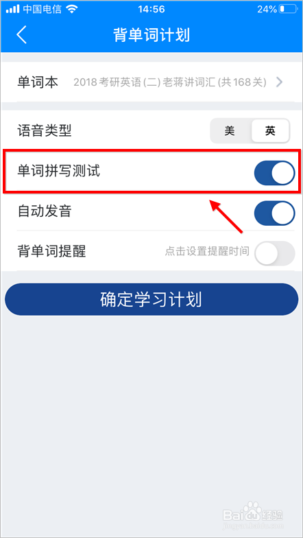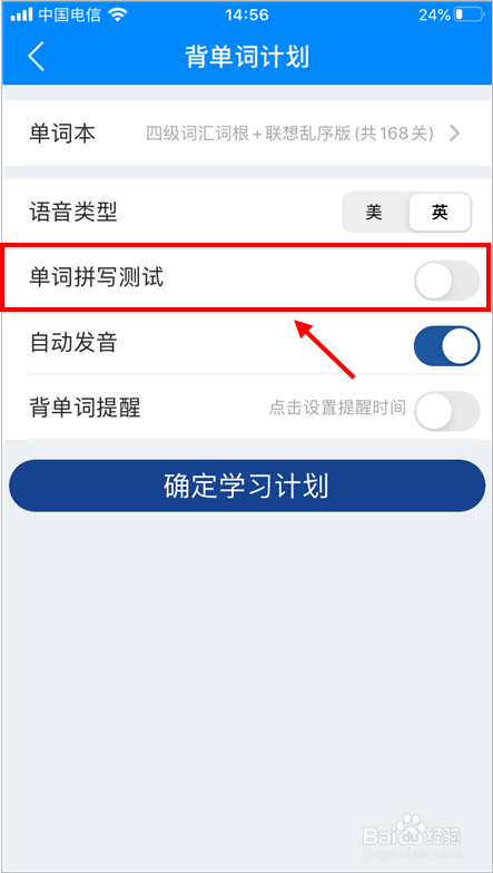 初次进入可可英语,需要拟定进修打算,封闭单词拼写即可。