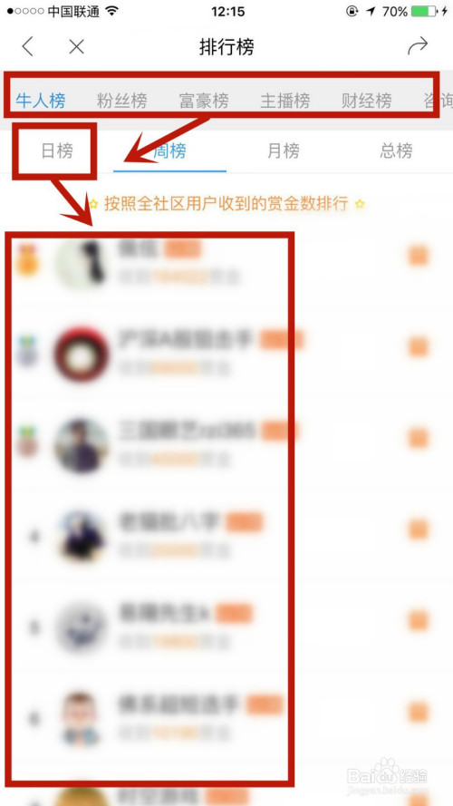 3.选上榜单类型,再点击日榜,页面就会显示出相关的用户。