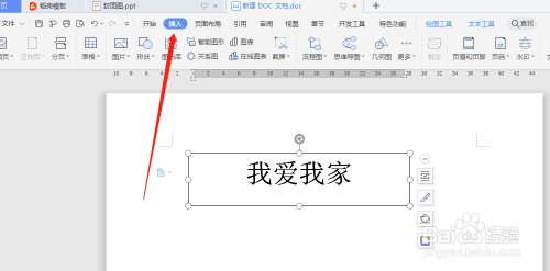 我们首先得插入文字再插入图片外形才能操作,先点击插入。
