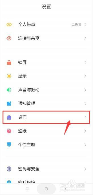 设置界面点击【桌面】。