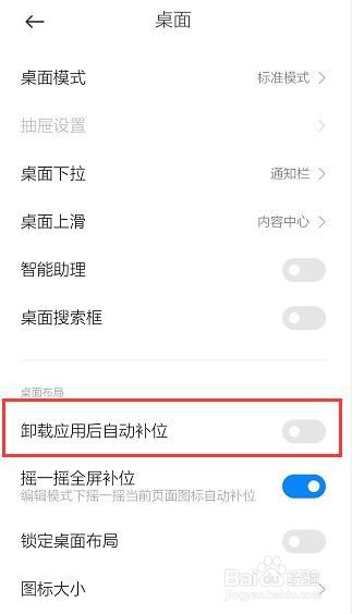 找到【卸载应用后主动补位】。