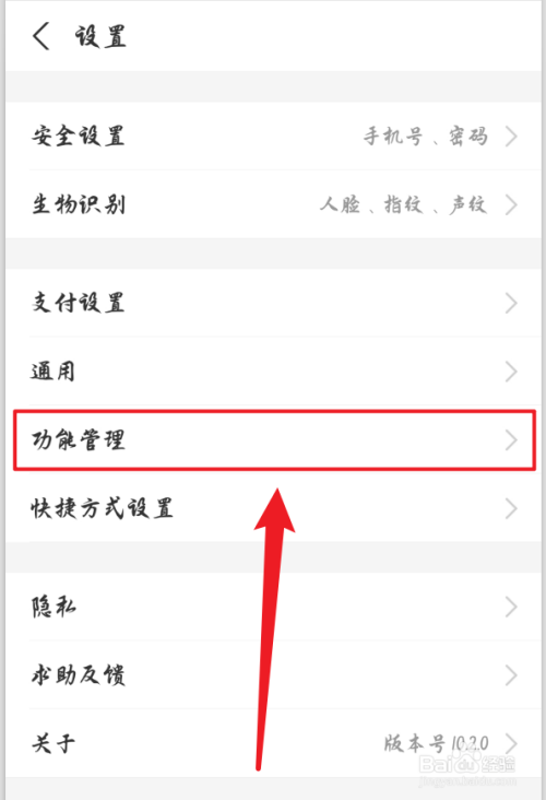 然后点击设置中的【功能办理】选项。