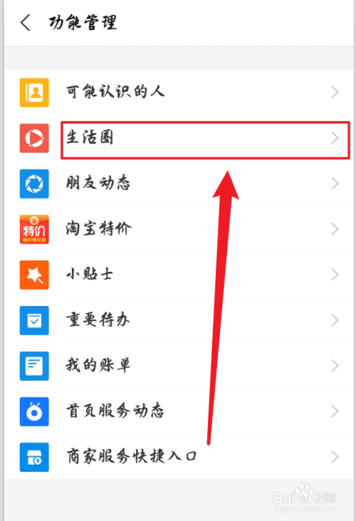 接着,在功能办理中点击【糊口圈】选项。