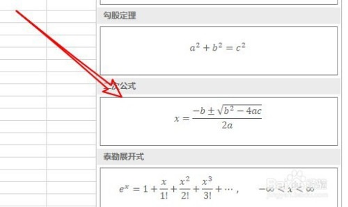 接下来在打开的下拉菜单中,点击二次公式的菜单。