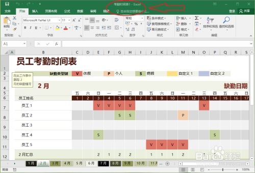 ●点击【考勤时候表】,就可以套用此模板成立新建工作簿了。