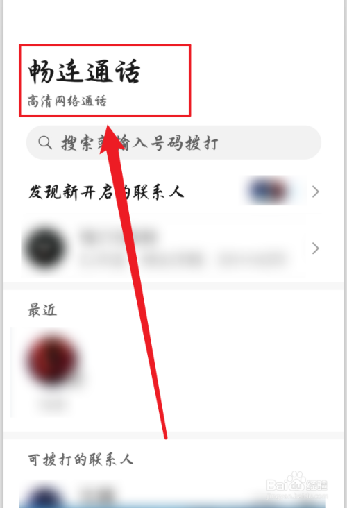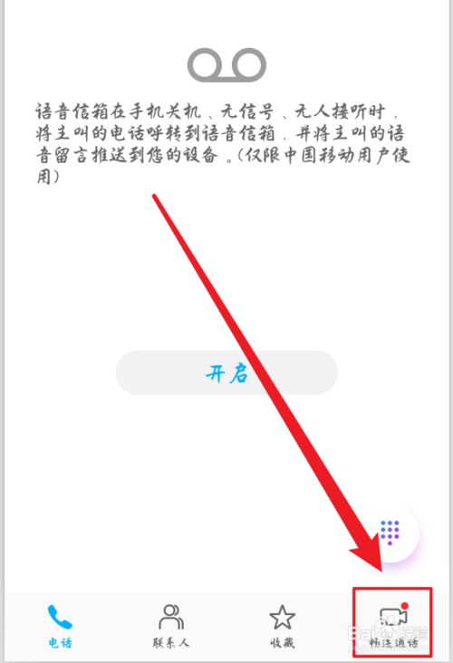 之后确认切换到了【畅连通话】页面(部门旧手机不撑持)。