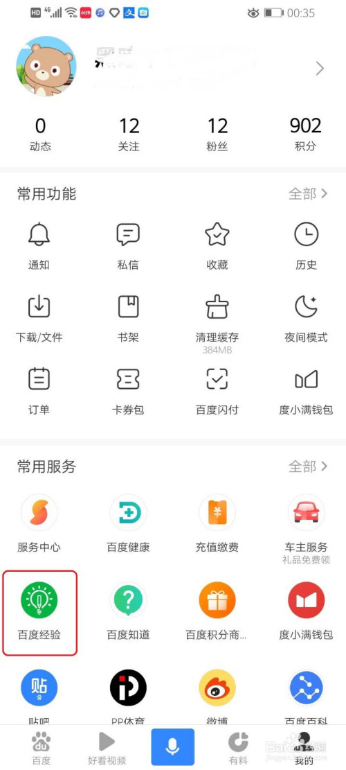 在”常用办事“下面打开要添加的办事,例如点击【百度经验】。