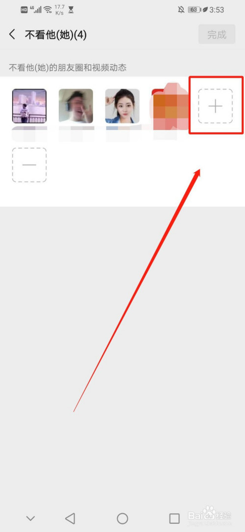 进入“不看他(她)”界面后,点击“不看他(她)”界面的“+”,