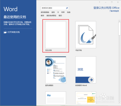 点击【空白文档】,新建一个word文档。