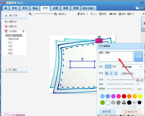 点击输入文字后,系统会跳出一个设置框,在文字框里输入文字。