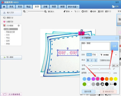 输入完文字后,选择文字的颜色,再点击应用按钮。