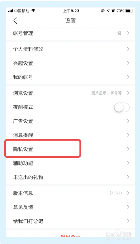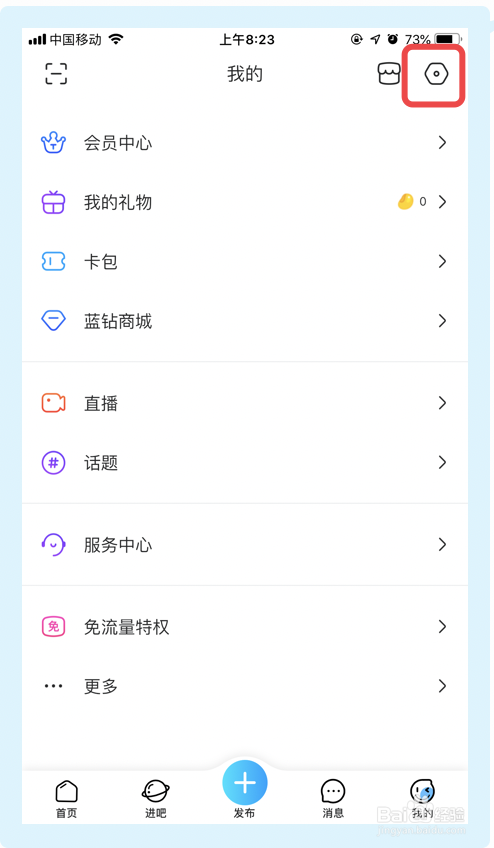 在【我的】界面,点击右上角的设置图标,如下所示: