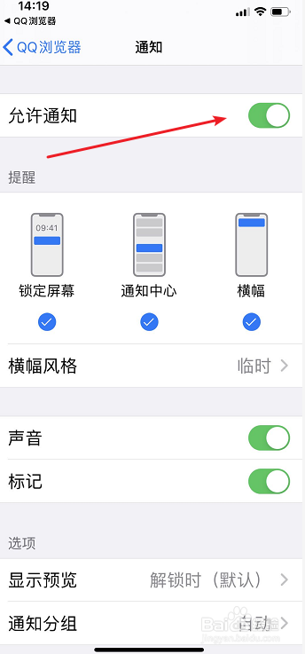点击封闭后,会跳转到手机的设置页面,我们点击【封闭】通知