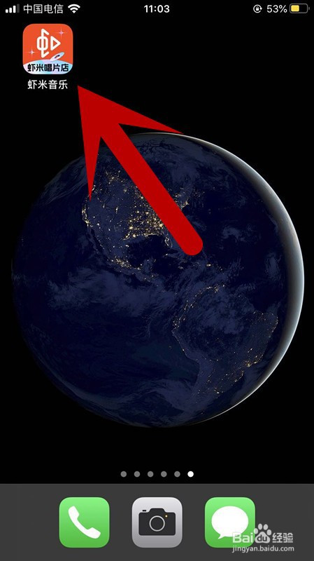 解锁进入手机系统后,选择并点击虾米音乐APP图标。