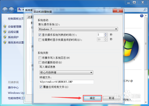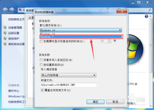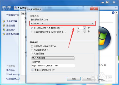 【7】下拉框中显示Windows7后,点击“确定”按钮来保留设置,今后启动电脑时默认启动的操作系统是Windows7。