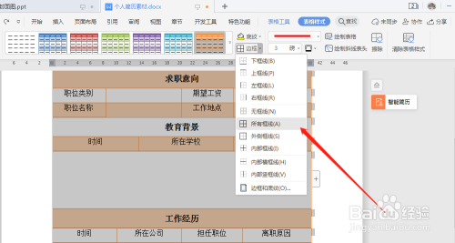 设置表格样式,若是不想要表格中的某个单位格了,直接点击擦除就可以了。