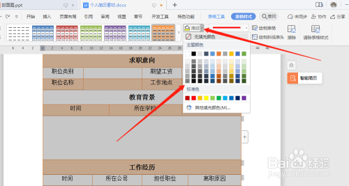 设置表格样式,点击底纹,选择合适的底纹颜色。