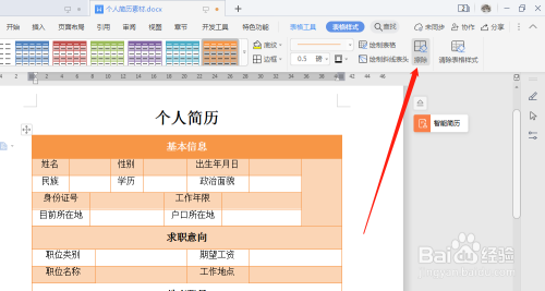 设置表格样式,若是不想要表格中的某个单位格了,直接点击擦除就可以了。