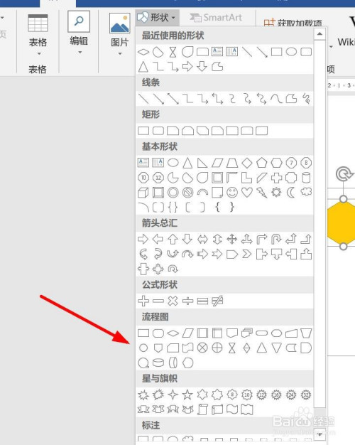 选择流程图,然后拖动鼠标在画布上绘制流程图。
