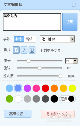 输入文字“美图秀秀”,选择颜色。
