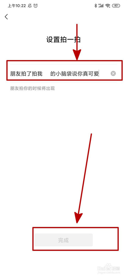 第五步,设置本身想要的拍一拍【案牍】,点击【完当作】
