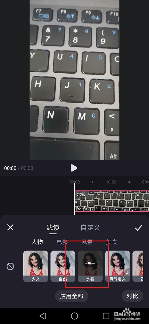 第五步进去滤镜界面之后,选摘要添加的滤镜,就给视频添加滤镜结果了,按照需要利用
