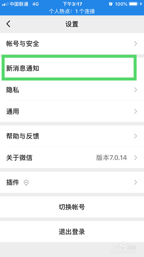 4.接下来,在设置按钮点击新动静通知按钮
