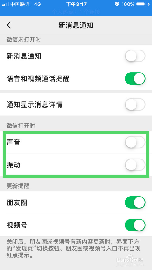 5.最后,在新动静通知界面选择微信打开可以用声音或者振动来提醒即可