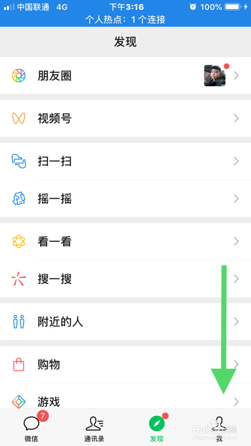 2.接着,在微信界面的右下角点击我按钮