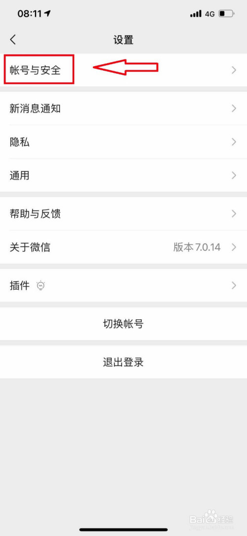 进入设置的本家儿页面后,我们点击进入帐号与平安。
