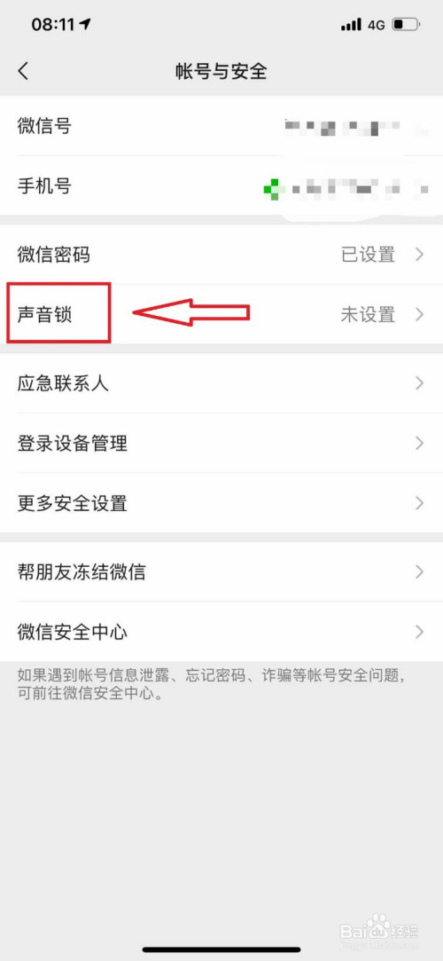 进入帐号与平安的本家儿页面后,我们点击进入声音锁选项。