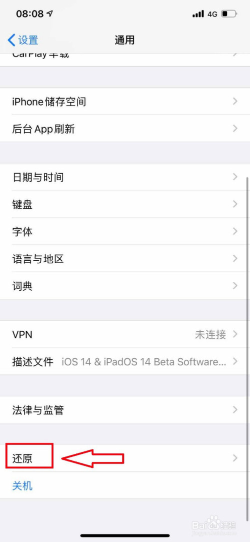 进入通用的本家儿页面后,我们点击进入还原。