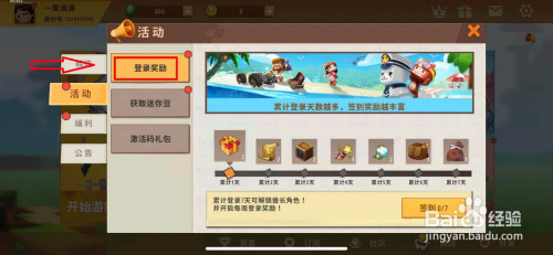 进入活动的本家儿页面后,我们点击进入登录奖励选项。