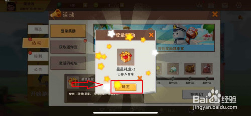 如图,这时我们就接收到登录奖励了。然后点击确定即可返回游戏页面。