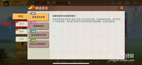 进入到精选资讯的本家儿页面后,我们点击进入活动选项。