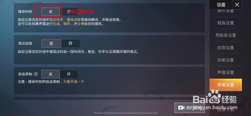 在录像设置的本家儿页面中,我们可以看到出色时刻录制是封闭状况的。
